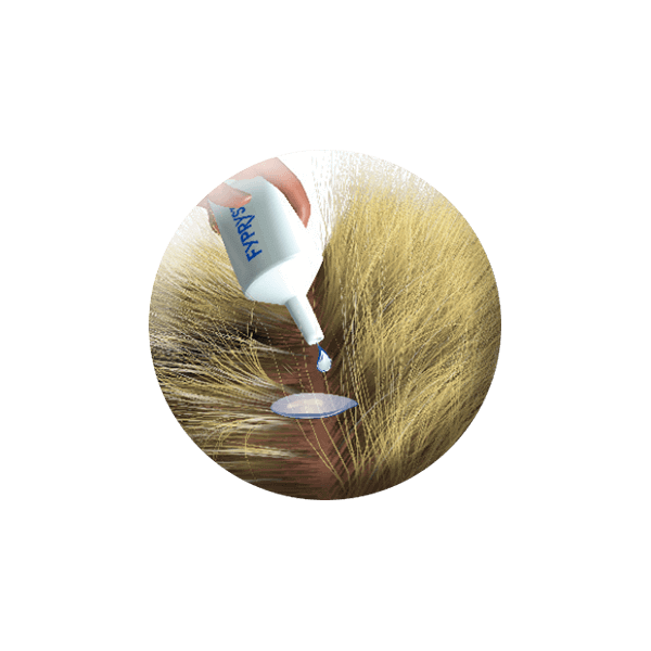 Ir svarīgi zāles lietot uz ķermeņa vietā, kur dzīvnieki tās nevar nolaizīt.