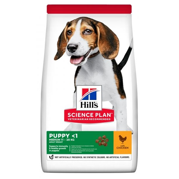 Science Plan™ MEDIUM PUPPY KUCĒNU BARĪBA AR VISTU (vista 17%; kopā mājputnu gaļa 27%) ir augstvērtīga un pilnvērtīga mājdzīvnieku barība vidējo šķirņu kucēniem līdz 12 mēnešu vecumam un grūsnām vai barojošām kucēm.