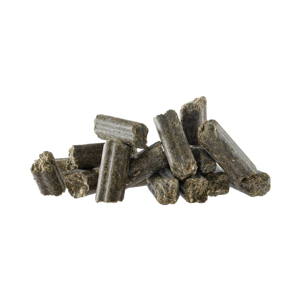 Sastāvs: kviešu klijas, lucernas milti, mieži, kukurūza, kalcija karbonāts, kaltētas eikalipta lapas (1%). |