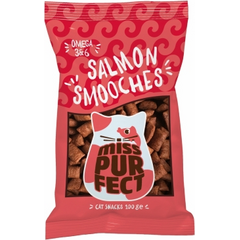 Miss Purfect gardums kaķiem - Salmon Smooches, spilventiņi ar lasi 100g Papildbarība kaķiem - spilveņi ar laša garšu, kaķa veselīgai ādai un spalvai, ar Omega 3 un Omega 6. SASTĀVS: Graudaugi, gaļa un dzīvnieku izcelsmes produkti, eļļas un tauki (Omega 3: 800 mg/kg, 6: 900 mg/kg), augu...