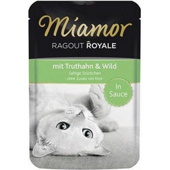 Cena spēkā, pasūtot vismaz 11 x 100g. Cena norādīta par 1gb Miamor Ragout Turkey&Wild 100g - konservi mērcē ar tītaru un medījumu. Pilnvērtīga barība kaķiem . Sulīgi ragū gabaliņi mērcē. Saudzīga apstrāde saglabā vitamīnus. Miamor Ragout Royal karaliskais piedāvājums...