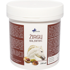 Skirta naudojimui išorėje žirgams. Priežiūros priemonė. SUDĖTIS: arnikos, aloe, alypinės, gysločių, avižų, ramunėlių ekstraktai, kamparas, metilsalicilatas, denatuotas etilinis alkoholis, glicerinas, pagalbinės medžiagos. Šildantis augalinės kilmės balzamas skirtas skausmingiems,...
