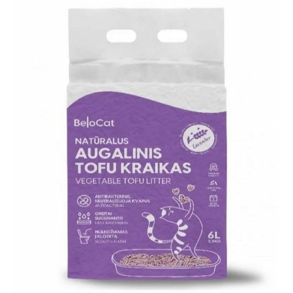 BelCat Tofu Susipynęs Katinų Kraikas su Levandų Kvapu 6L - natūralūs granuliuoti katinų kraikai su levandų aromatu