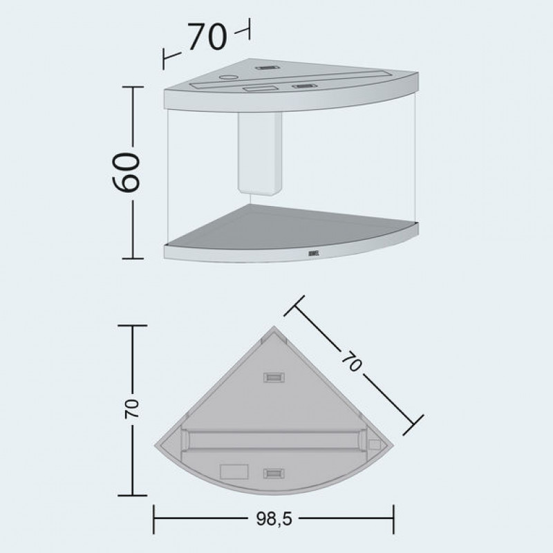 Matmenys: 70*70*60cm, platiausia akvariumo vieta 98.5cm