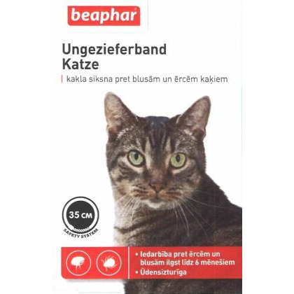 Kaklaraištis nuo blusų, erkės katėms – Beaphar Ungezieferband, 35 cm, raudonas, receptinis veterinarijos preparatas - reg. NR VA - 072463/3.