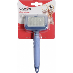Pavilno metalinė šepetys su plastikiniais galiukais šunims ir katėms 11x7 cm - Metalinės šakelės su apsauginiais plastikiniais galiukais - Patogus rankenėlis - Palaiko kailį sveiku ir blizgančiu - Dydis: 11 x 7 cm