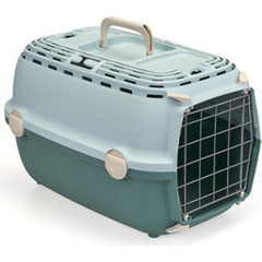 STEFANOLAST Transp.bokss HORIZON 1 metal. (anglų žalias/šviesiai žalia-mėlyna), dydžiai cm 48 x 32 x 30h - tai praktiška augintinių plastikinė narvelė, leidžianti patogiai ir saugiai keliauti su augintiniais, su saugos diržo tvirtinimo vieta šone.