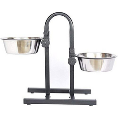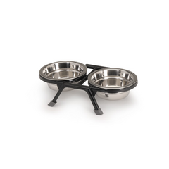Statīvs ar bļodām diam.12cm/480ml Nerūsējoša tērauda bļodu statīvs ar 2 x 12 cm x 480ml bļodam -stabils nersusējoša tērauda statīvs -2 noņemamas nerūsējoša tērauda bļodas -higiēnisks un kluss tilpums: 2 x 480ml