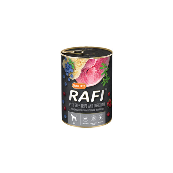 Piper Rafi Adult with Beef Tripe and Pork Ham, Cranberry and Blueberry 400gr - Ar liellopa kuņģi un cūkgaļas šķiņķi