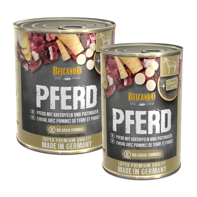 СОСТАВ: Конина, сердце, желудок, печень, легкие (63%); Мясной бульон (28,5%); Картофель (4%); Пастернак (2%); Семена чиа (1%); Сафлоровое масло (0,5%); Яичная скорлупа сушеная (0,5%); Минералы (0,5%)