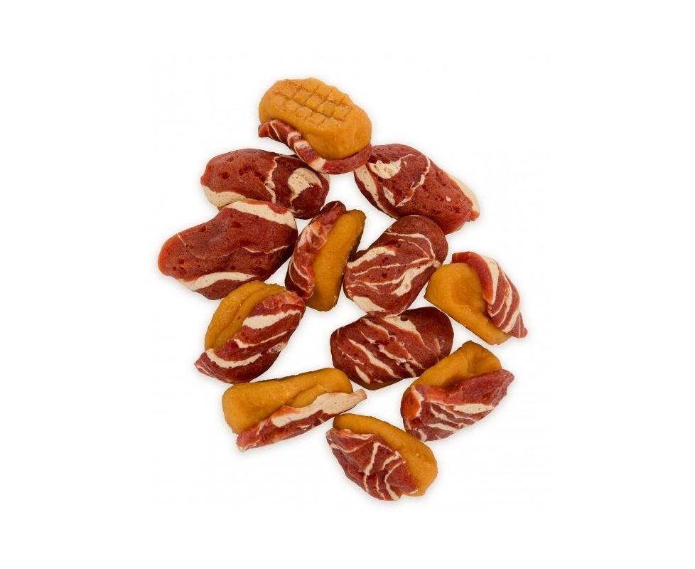 HAU & MIAU nigiri suši lasis ar pīli, 500 g - papildbarība pieaugušiem suņiem, suši ar lasi un pīli. Apvienojot augstākās kvalitātes laša un pīles gaļu, šis kārums nesatur mākslīgās piedevas, [ krāsvielas un konservantus, nesatur lipekli un tam ir mīksta, viegli sakošļājama tekstūra.