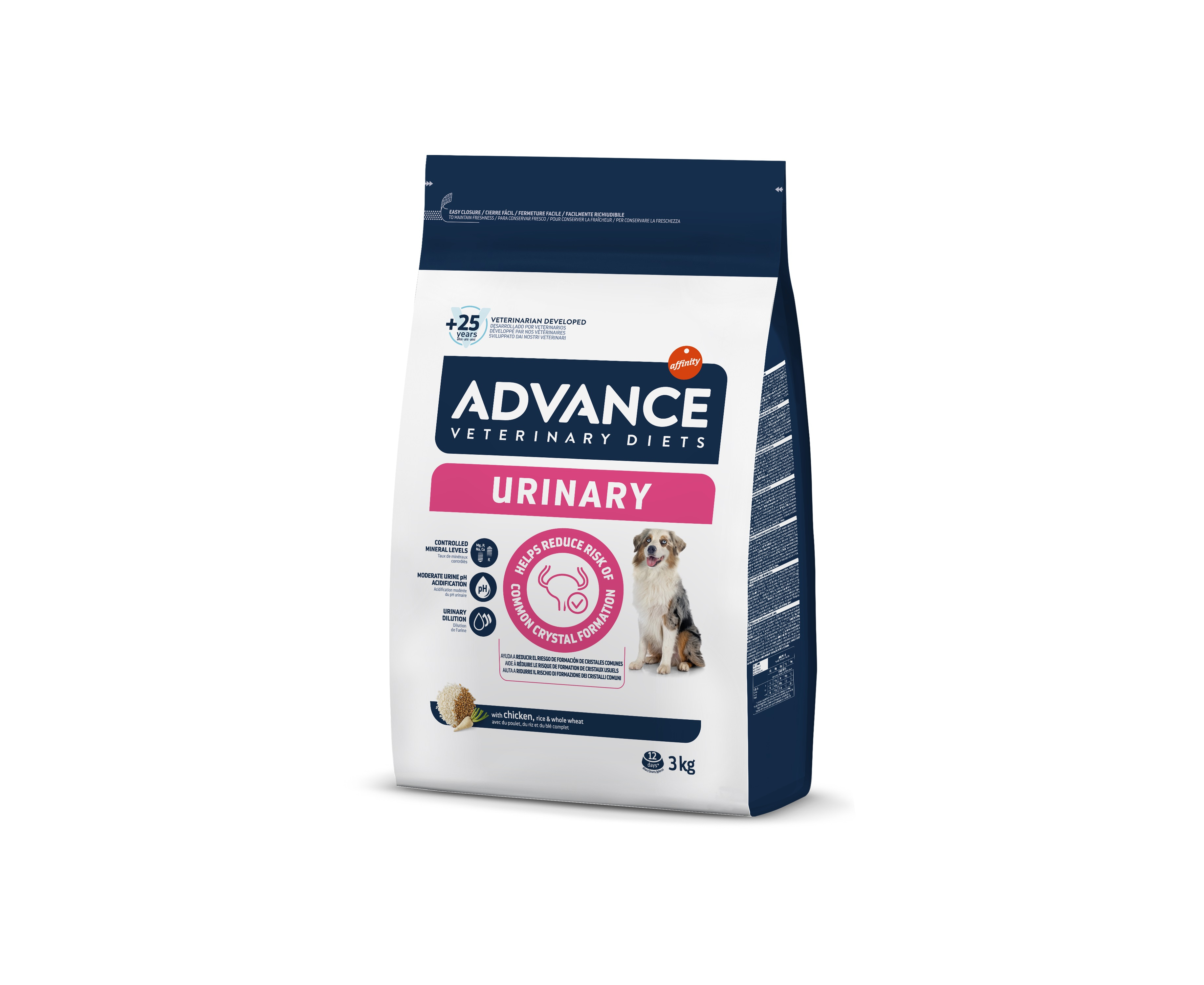 ADVANCE VETERINARY DIETS CANINE URINARY 3KG - diētiska, pilnvērtīga barība pieaugušiem suņiem ar īpaši izstrādātu sastāvu