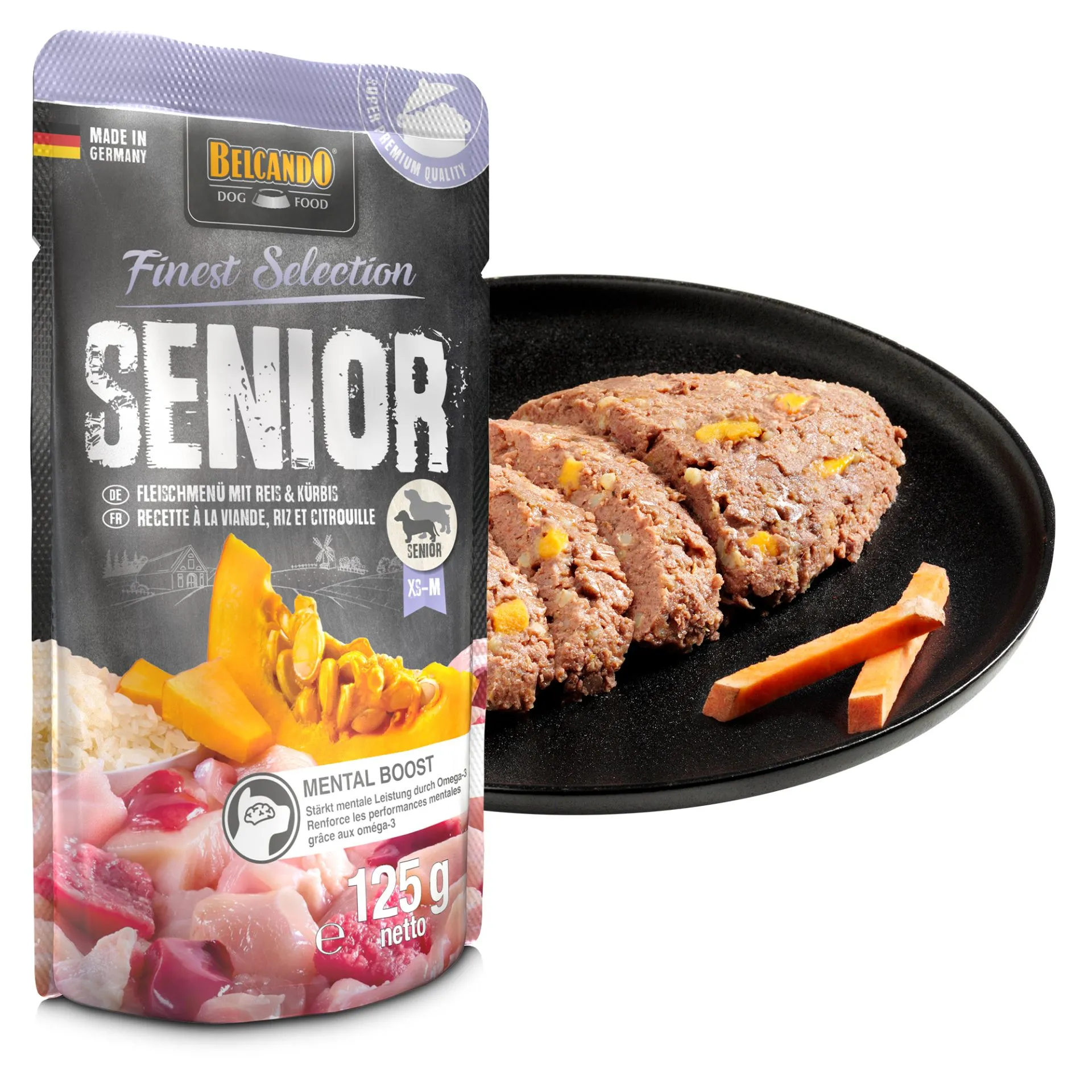 BELCANDO Finest Selection Senior – Gaļas ēdiens ar rīsiem un ķirbi