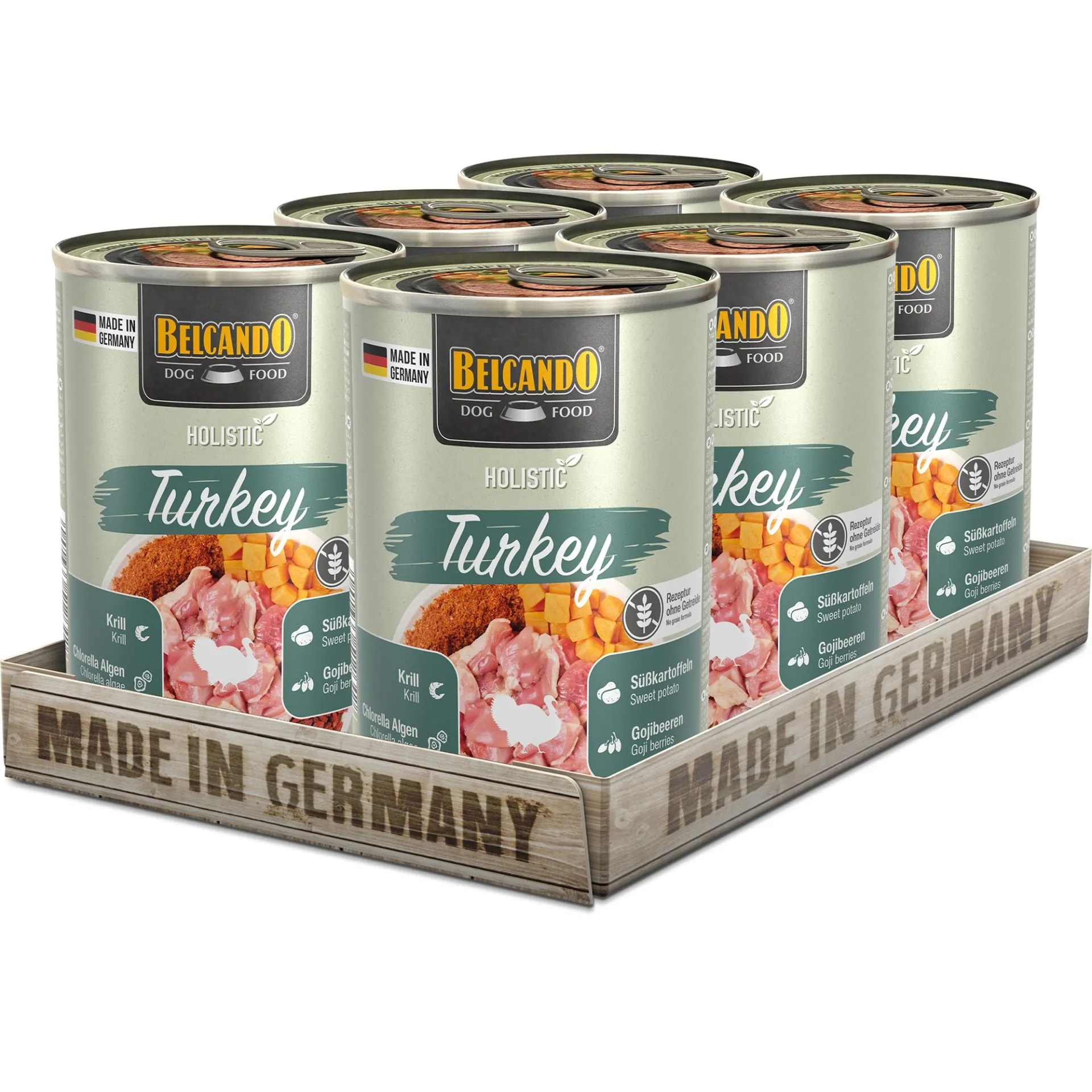 Holistic Turkey ir premium klases mitrā barība pieaugušiem suņiem. Tās sastāvā — tītaru gaļa (arī muskuļu kuņģi), vistas aknas un sirdis, papildinātas ar saldajiem kartupeļiem, krilu, godži ogām un hlorellas aļģēm. Šī formula nodrošina suni ar antioksidantiem, vitamīniem, omega-3 taukskābēm un vērtīgiem ogļhidrātiem.