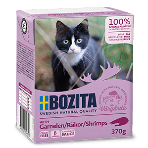 Sastāvs: vistas gaļa, garneles (7.2% katrā gabaliņā), cūkgaļa, liellopu gaļa, kalcija karbonāts, МacroGard® .