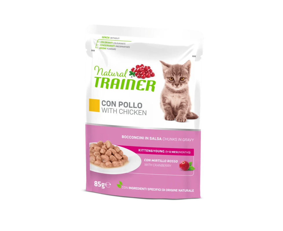 NATURAL TRAINER CAT KITTEN&YOUNG CHICKEN 85g - täisväärtuslik ja tasakaalustatud konserveeritud toit 1-12 kuud vanustele noortele kassidele ja kassipoegadele.