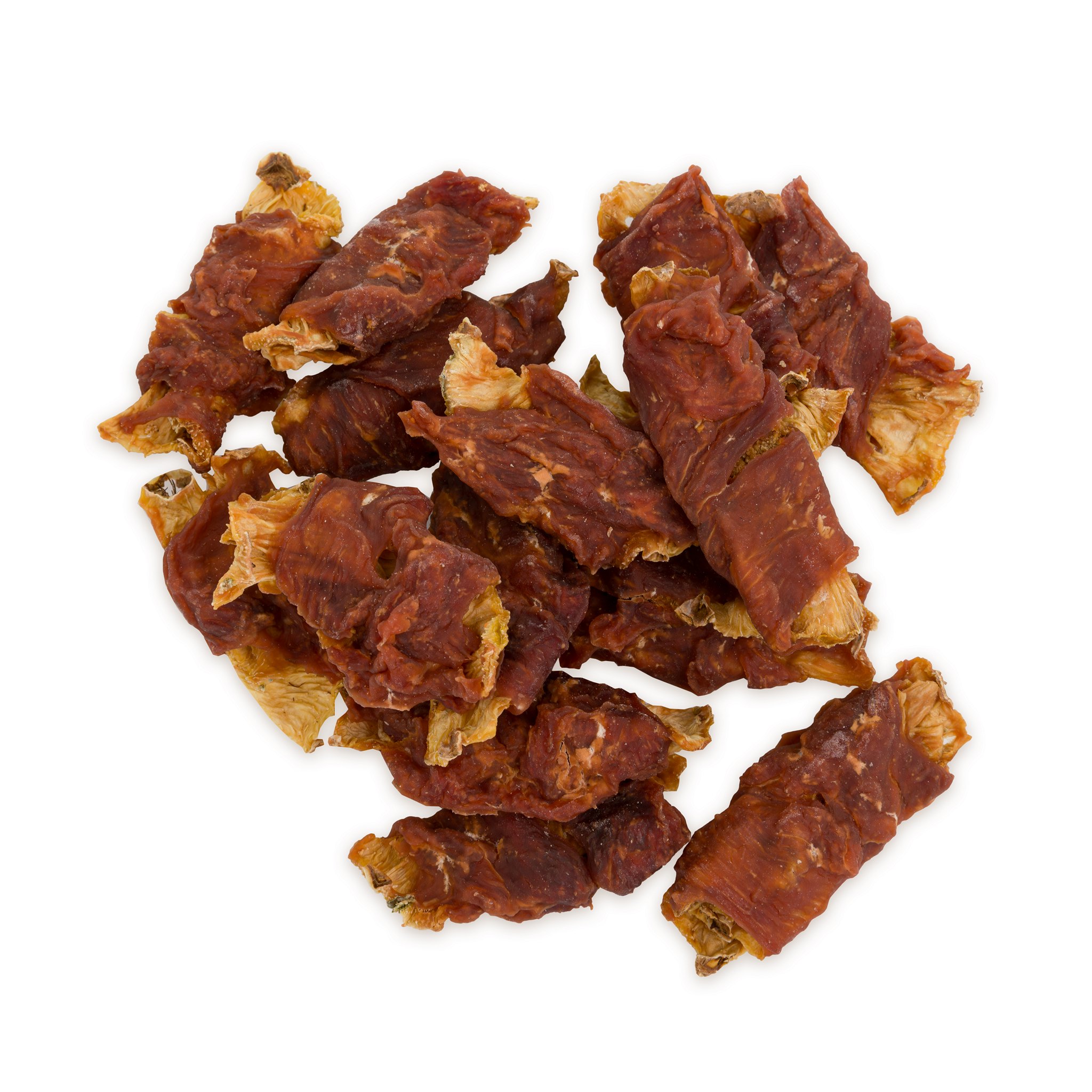 | HAU & MIAU duck wrapped pineapple, 500g - papildbarība pieaugušiem suņiem, pīles gaļā ietīti ananāsa gabaliņi.