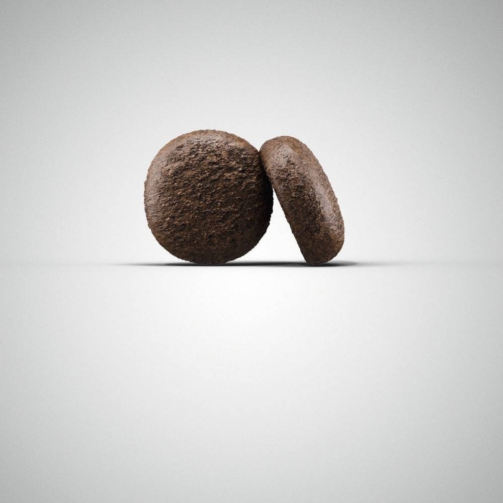 Sastāvs: kaltēti kartupeļi 43%, dehidrēts pīles gaļas proteīns 25%, mājputnu tauki, biešu mīkstums,