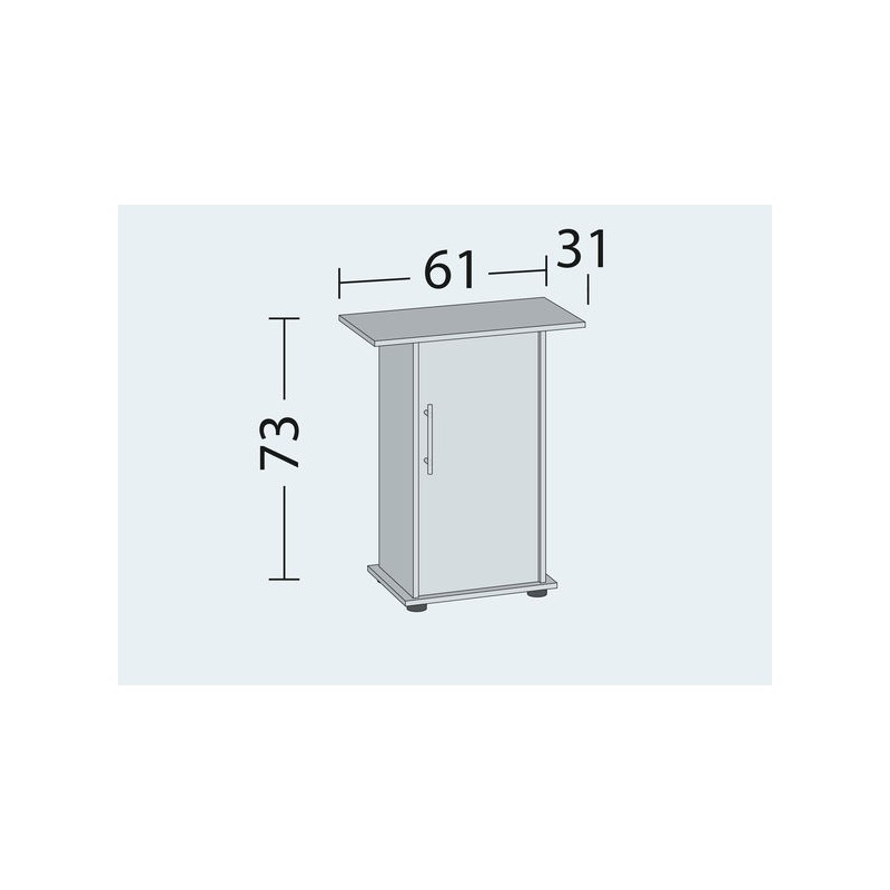 Akvārija skapis, pateicoties savai konstrukcijai, būs droša pamatne akvārijam, un tai pašā laikā nodrošinās daudz vietas visu akvārija piederumu un aprīkojumu uzglabāšanai. Skapja augstums ir optimāls akvārija vērošanai cilvēkiem sēžot dīvānā vai atpūtas krēslā. Skapis ir izgatavots no augstkvalitatīvā materiāla ar mitrumatgrūdošu pārklājumu, kurš ir izturīgs pret akvārija ūdens ietekmi. Šāds pārklājums pasargā no samirkšanas, uzbriešanas un akvārija skapja deformācijas. Plauktu var izmantot arī citu ražotāju akvārijiem ar tilpumu līdz 70L.