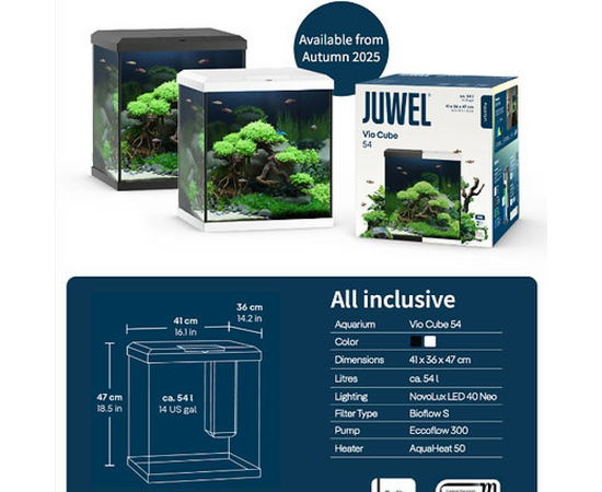 Juwel Vio Cube 54 – pats mazākais starp Juwel akvārijiem – ideāli piemērots garnelēm vai mazām zivtiņām.