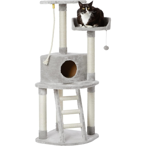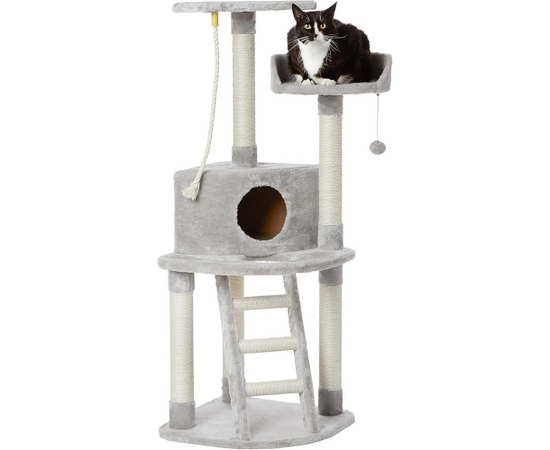 | PC Cat Tree liels — tornis ar skrāpējamo stabu un pakāpienu kāpnēm — 49 CM x 49 CM x 131 CM, 13 KG |