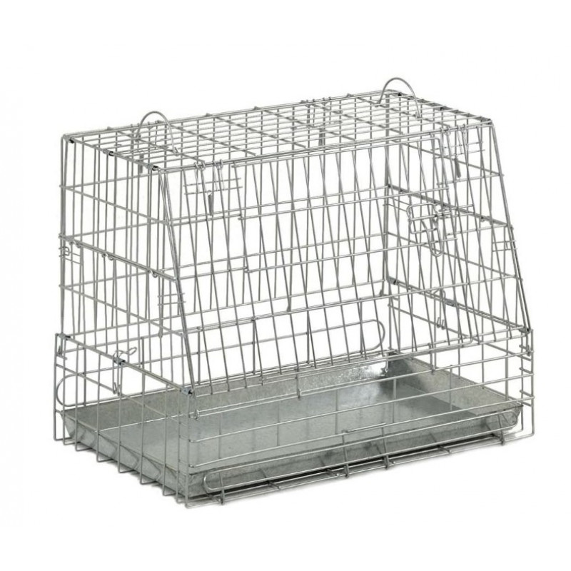 Saliekams halvanizēts metāla būris ar izņemamu metāla paliktni. Slīpa priekšējā siena atvieglo būra izvietošanu automobiļos ar “hetčbeks” virsbūvēm.