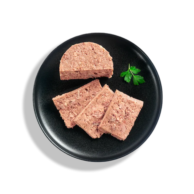 Sastāvs: gaļa un gaļas atvasinājumi (65% liellopu gaļa + liellopu buljons 34%),minerālvielas (1%).
