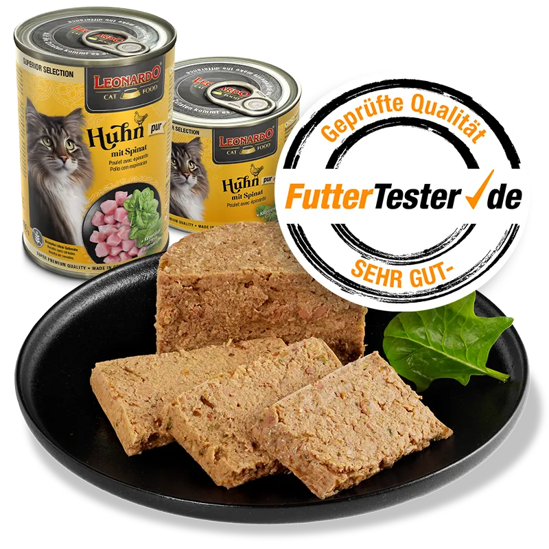 Leonardo LEO Superior Chicken with spinach 400g – pilnvērtīga barība, konservi kaķiem ar vistas gaļu un spinātiem