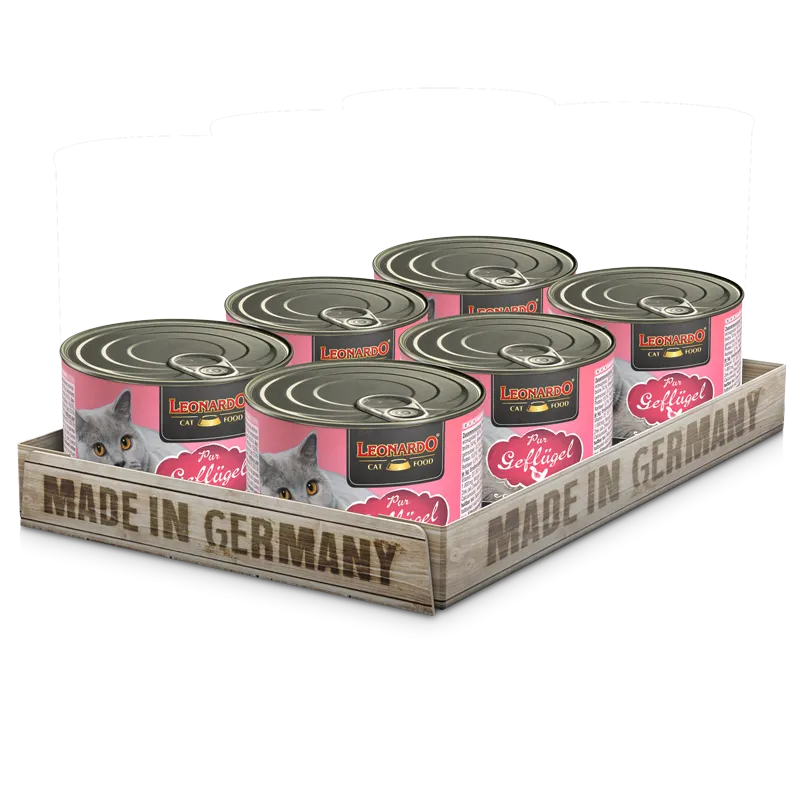 Leonardo kaķu konservi ar mājputnu gaļu.