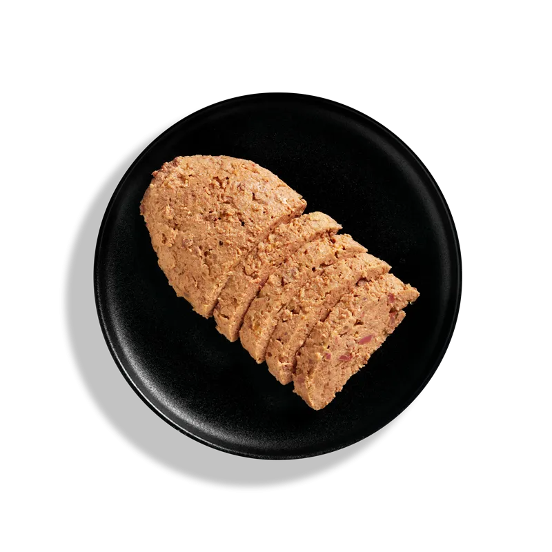 Teļa gaļa, aknas, sirds, plaušas, nieres (60%); teļa buljons (30,8%); ķirbis (6,5%); cigoriņu inulīns (1%); laša eļļa (0,5%); olu čaumalas¹ (0,5%); minerāli (0,5%); alus raugs, inaktivēts¹ (0,2%) *¹žāvēts