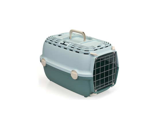 | STEFANOLAST Transp.bokss HORIZON 1 metal. (anglų žalias/šviesiai žalia-mėlyna), dydžiai cm 48 x 32 x 30h - tai praktiška augintinių plastikinė narvelė, leidžianti patogiai ir saugiai keliauti su augintiniais, su saugos diržo tvirtinimo vieta šone. |