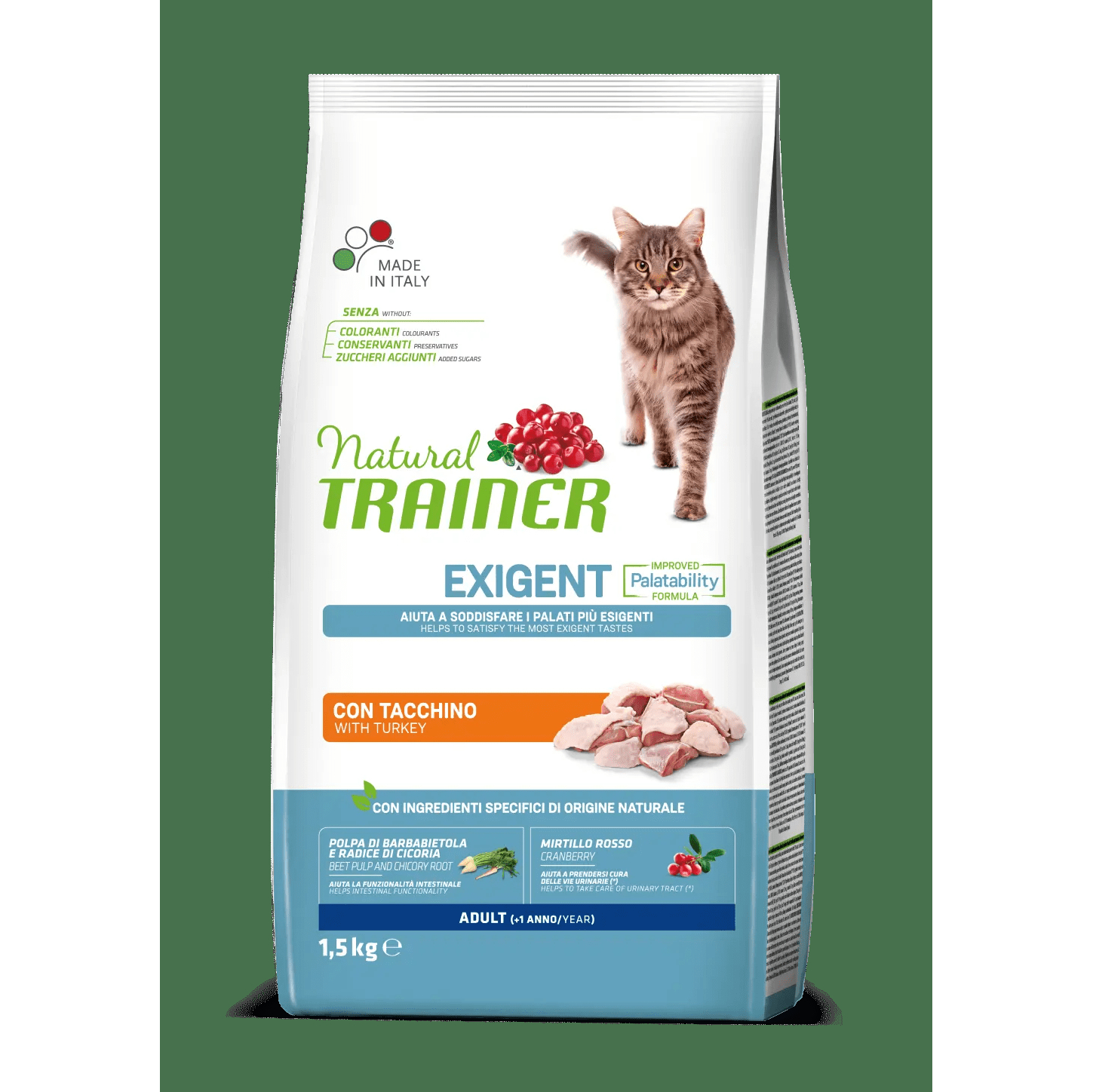 NATURAL TRAINER CAT EXIGENT ADULT WITH WHITE MEAT 1.5 kg- pilnvertīga sabalansēta sausā barība ar tītaru izvēlīgiem pieaugušiem kaķiem