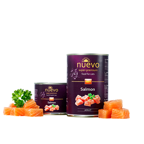 Konservi kaķiem Nuevo Super Premium vista un lasis. Jauna Nuevo garša dos jūsu kaķim visu, kas viņam ir nepieciešams - daudz svaigas gaļas, dārzeņu un augļu, derīgu eļļu, kā arī visu nepieciešamu vitamīnu un minerālvielu. Tikai paši labākie ingredienti ienāca barības sastāvā Nuevo.Tas iepatiksies pat prasīgiem kaķiem! Īpaši saudzējošā pārstrāde ļauj saglabāt galvenus vitamīnus un mikroelementus praktiski pilnībā.. Visas receptes ir izstrādātas atbilstoši mūsdienīgiem prasībam dzīvnieku dietoloģijas un sekmē garu kaķu dzīvi.