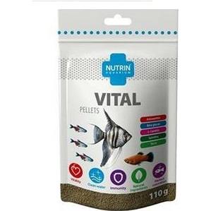 | NUTRIN AQUARIUM VITAL PELLETS Pilnvērt.granulētā barība ar augstu barības vielu saturu visu veidu akvāriju zivīm. Lēnām iegrem. granulas ar diametru 1mm, bagātinātas ar beta-glikānu, astaksantīnu, L-karnitīnu, spirulīnu un jukku. Atbalsts vitalitātei, vielmaiņai, imūnsistēmai, krāsai un reprodukcijai. Sastāvdaļu % daudz.: Kopproteīns 45%, kopeļļas un koptauki 9%, kopšķiedra 2%, koppelni 11%. Piedevas uz 1kg: Uzturfiziol.: A vitamīns (3a672a) 44 000SV, D3 vitamīns (3a671) 2500SV, E vitamīns (3a700) 400mg, C vitamīns (3a300) 300mg, L-karnitīns (3a910) 100mg, holīna hlorīds 400 mg, niacinamīds 225mg, B5 vitamīns 31mg, B2 vitamīns 16mg, B6 vitamīns 12mg, K3 vitamīns 9mg, B1 vitamīns 5mg, folijskābe 3,25mg, biotīns 2,25mg, vitamīns B12 0,12mg. Mikroelem. Zn (3b603) 150mg. Emulgatori: lecitīns (E 322) 20g. Aminoskābes: DL-metionīns (3c301) 10g. Krāsvielas: astaksantīns (E161) 30mg; Antioksidanti. Dienas deva: pēc nepiecieš., lai zivis izēd dažu min. laikā. Glabāt: sausā,vēsā vietā. Derīg. termiņu, part. Nr., neto svaru: skatīt uz iepak. Ražotājs: Nutrin s.r.o.,Cz |