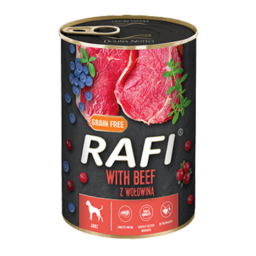 Mitrā barība (konservi) suņiem Dolina Noteci Rafi Beef, Blueberries, Cranberries, liellopa gaļa