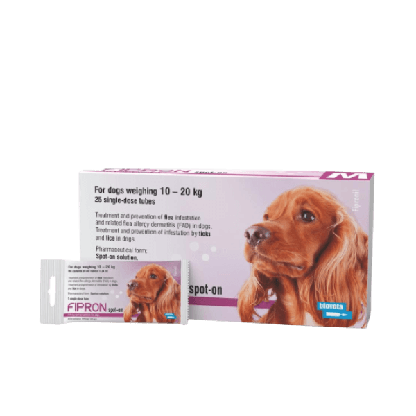 Šķīdums pilināšanai uz ādas vidēja auguma suņiem – svars no 10 līdz 20kg. Blusu un ērču invāzijas ārstēšanai un kontrolei, blusu alerģiskā dermatīta ārstēšanai un kontrolei. Papildu informācija, bezrecepšu veterināro zāļu lietošanas instrukcija un apraksts atrodams Pārtikas un veterinārā dienesta (PVD) Veterināro zāļu reģistrā: ŠEIT