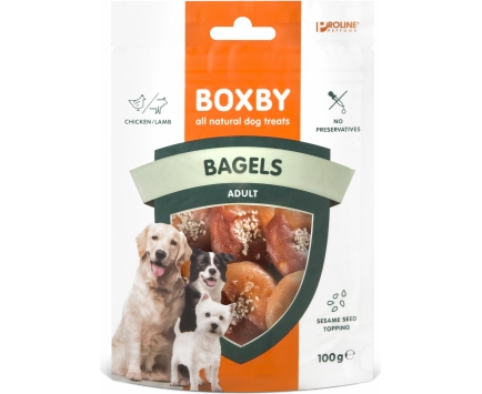 Boxby Bagels Chicken & Lamb 100g - дополнительный корм для взрослых собак, багели с ягненком и курицей, посыпанные кунжутом, который придает им неповторимый ореховый вкус.