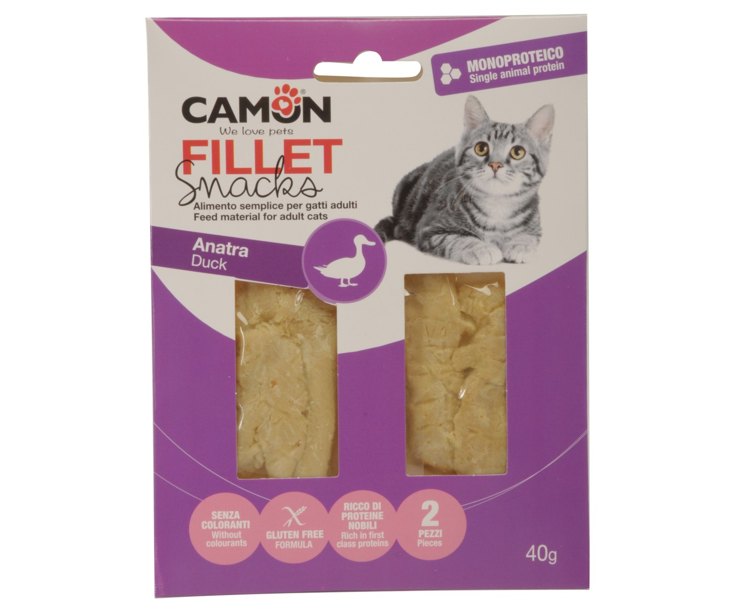 | Филе утки CAMON CAT - 40 г, дополнительный корм для взрослых кошек - вкусное филе утки: