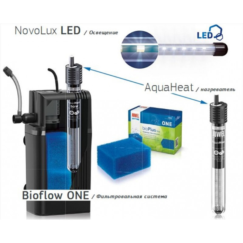 В моделях PRIMO 60 и PRIMO 70 аквариумный фильтр крепится на присоски. В PRIMO 110 корпус фильтра вклеен в правом заднем углу аквариума. При необходимости фильтр может быть переклеен в другое место или демонтирован. Во всех моделях, нагреватель расположен в протекающем через фильтр потоке воды, тем самым обеспечивая равномерный нагрев воды в аквариуме.