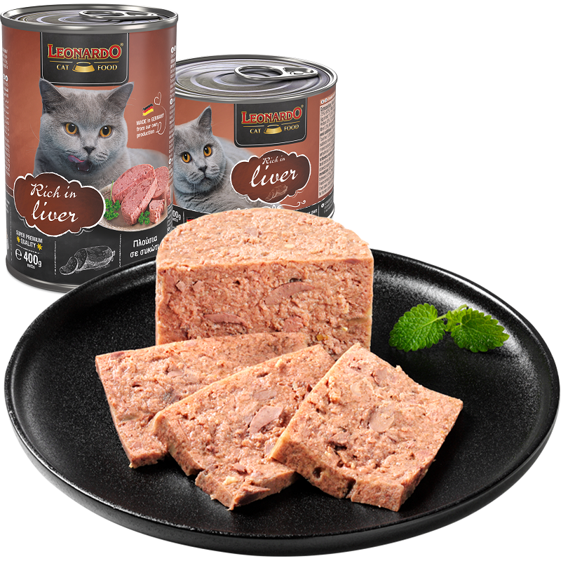 Консервы с печенью - обогащены витаминами, таурином и ценными микроэлементами. Подходят для взрослых кошек всех возрастов, являются полноценным сбалансированным питанием. Консервы состоят исключительно из высококачественного мяса, имеющего высокую биологическую ценность. НЕ содержат соевого белка, ароматизаторов, красителей и консервантов. В производстве используется незамороженное мясо. Вкус печени так притягателен для кошек, предпочитающих потроха. Состав: мясо и мясные субпродукты-потроха (65 %, из них 25 % печень, + мясной отвар 34 %); минеральные вещества (1 %). Содержание: Белок, % 10, Жиры % 5,0, Сырая зола % 2,0, Клетчатка % 0,3, D3, МЕ (на кг) 200, E, мг (на кг) 50, Zn, мг (на кг) 20, Mn, мг (на кг) 2, J, мг (на кг) 0,2, Лецитин, мг (на кг) 1.000 Рекомендации по кормлению: 200-400 г в день для взрослой кошки весом 3-5 кг. Рекомендуется кормить влажным кормом Leonardo вместе с сухим кормом Leonardo (20 г сухого корма заменяют около 100 г влажного).