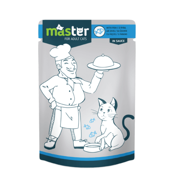 Pilnvērtīga barība jeb konservi pieaugušiem kaķiem. Sastāvs: mājdzīvnieku gaļa un dzīvnieku izcelsmes produkti, graudaugi, zivis un zivju blakusprodukti ne mazāk kā 4%, minerālvielas, augu olbaltumvielu ekstrakti.