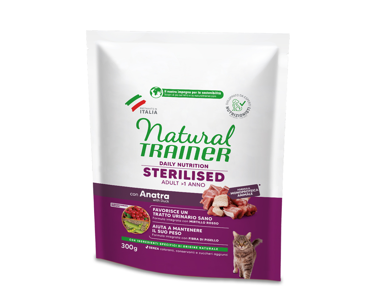 NATURAL TRAINER CAT ADULT STERILIZED WITH DUCK 300gr — полнорационный сухой корм для взрослых стерилизованных кошек с уткой