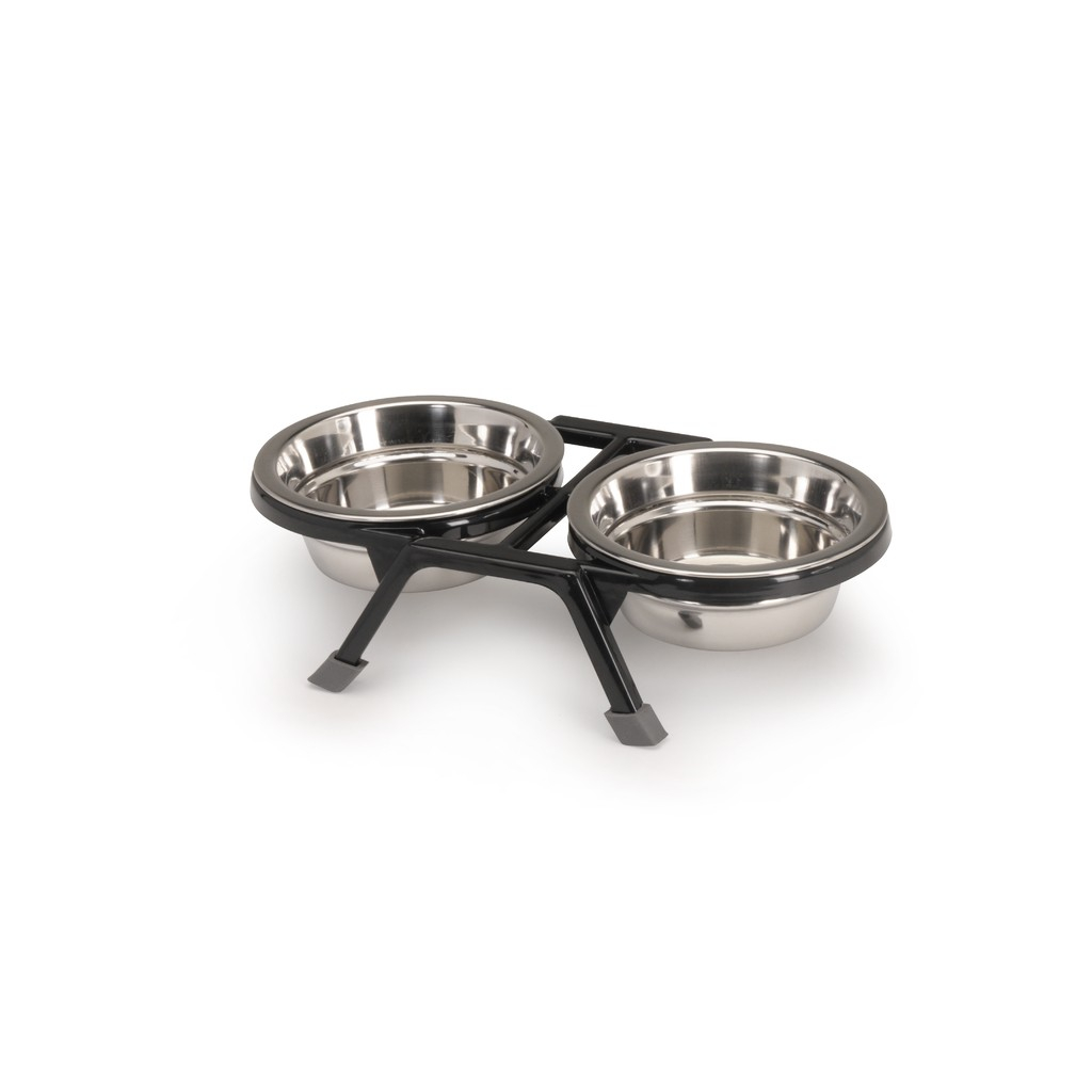 | Штатив для мисок с 2 x 10 cm x 240ml мисками из нержавеющей стали -стабильная подставка из нержавеющей стали -2 съемные миски из нержавеющей стали -гигиеничный и тихий объем: 2 х 240ml |