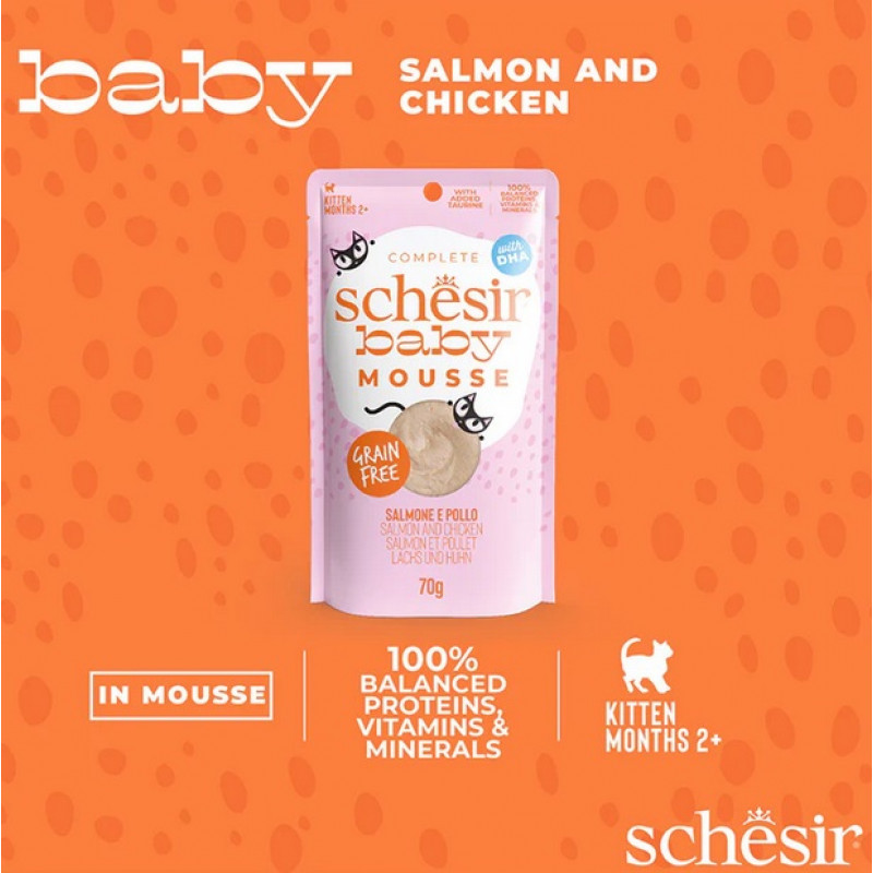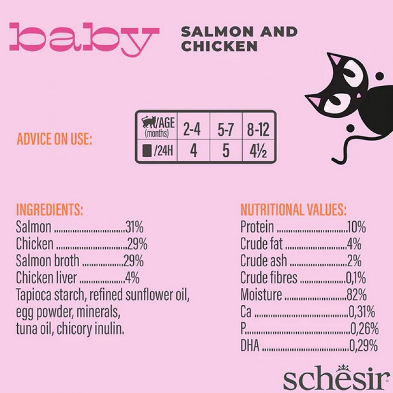 Pilnvērtīgā, ar augstu proteīna saturu, barība kaķēniem pēc 2 mēn. – mīksts un samtains uzputenis no īstas vistas gaļas un laša. 100% sabalansēti proteīni, vitamīni un minerāli. Pievienots taurīns. Bez graudiem.