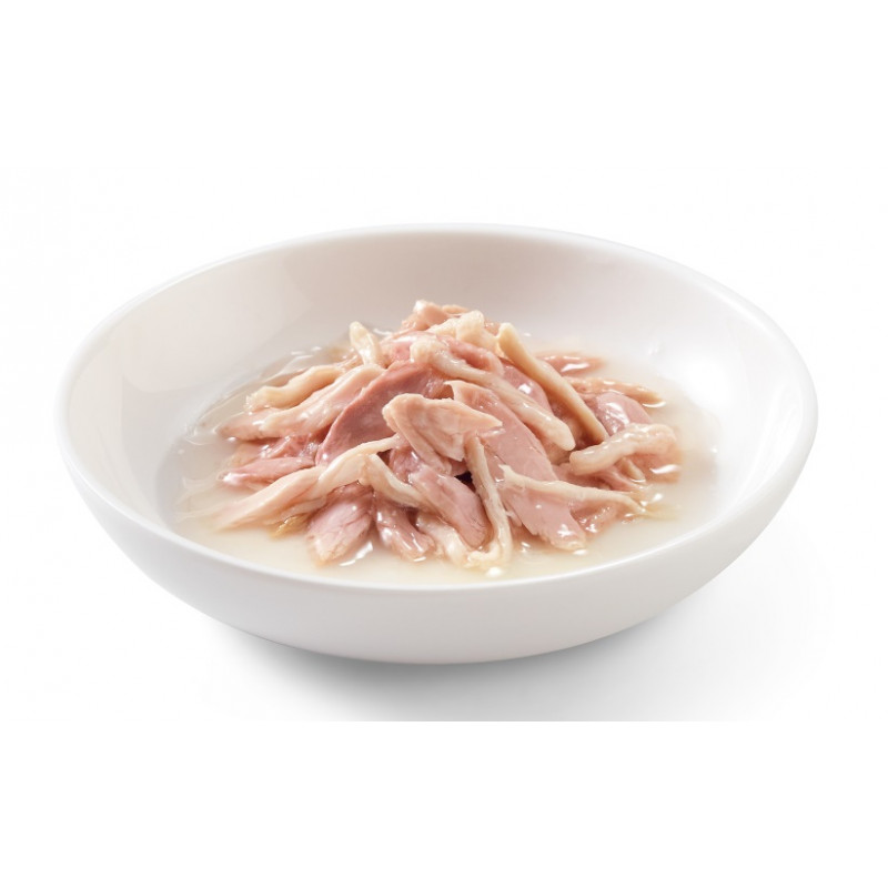 Izejvielas: tuncis 37,8%, vistas fileja 37,7%, zivju buljons 23,1%, rīsi 1,4%.