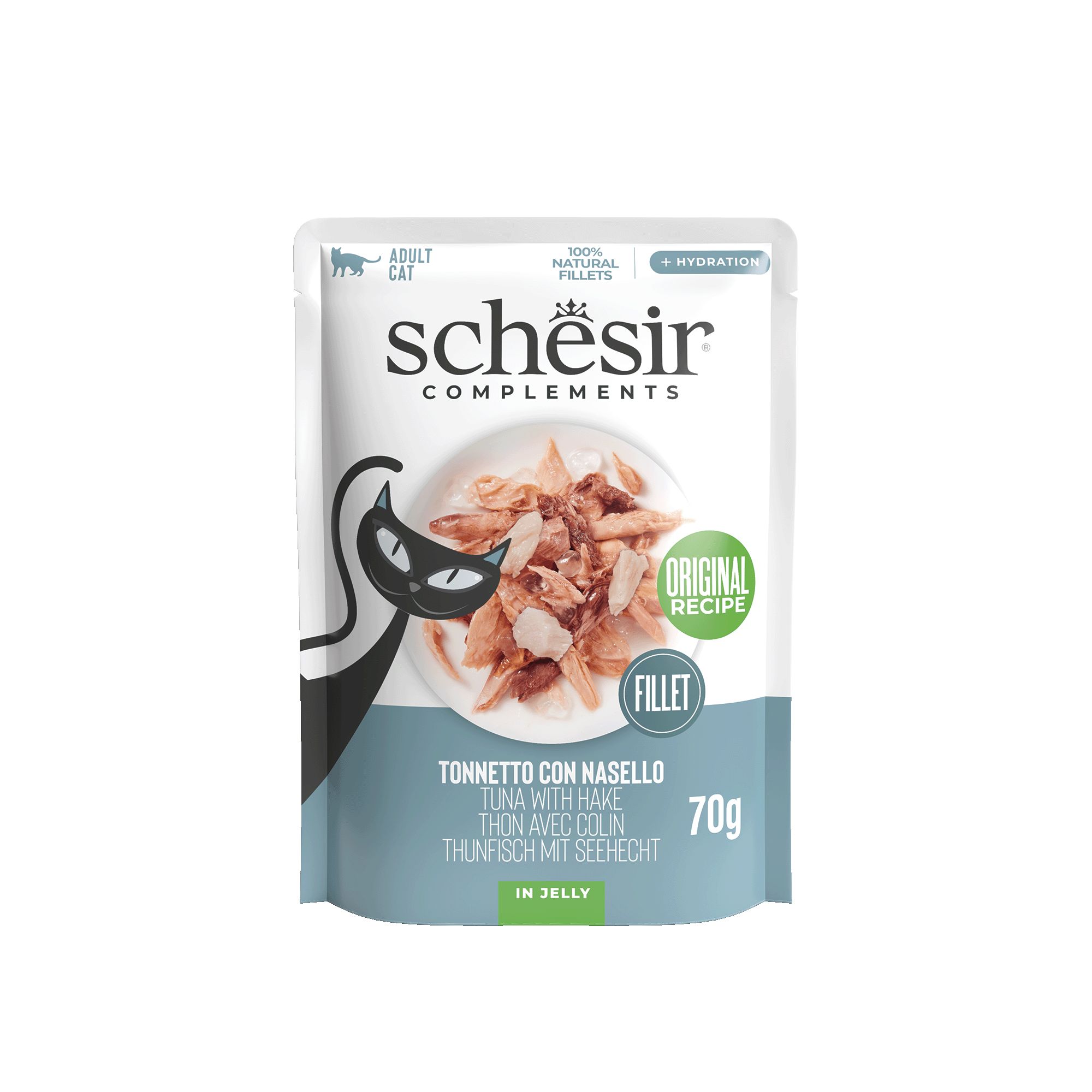 Schesir papildbarība kaķiem želejā – tunča filejas ar heku 70g