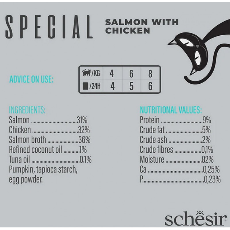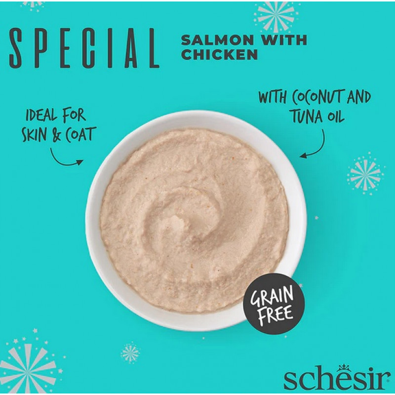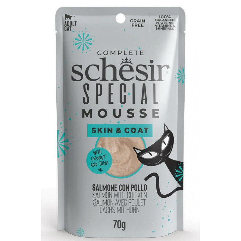 Pilnvērtīgā, ar augstu proteīna saturu, barība pieaugušiem kaķiem – ādas un kažoka veselībai. Mīksts un samtains uzputenis ir sakults no īstas vistas gaļas un laša, un bagātināts ar kokosriekstu un tunzivju eļļām. 100% sabalansēti proteīni, vitamīni un minerāli. Bez graudiem.
