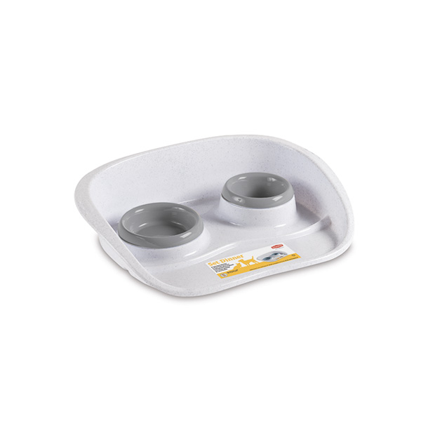 | Barošanas paplāte ar bļodam SET DINNER (pelēks /balts) cm 46x35x11h; bļodas 0,25+0,30 lt |