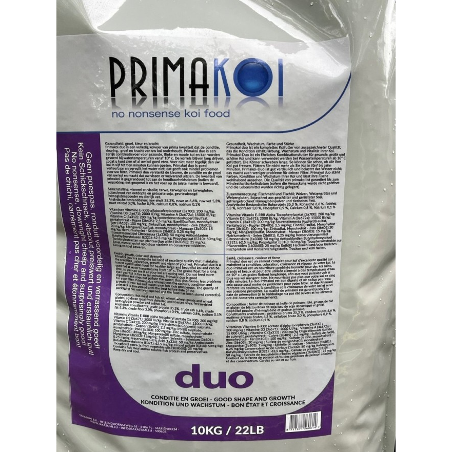 Primakoi Duo sausa barība piemērota lietošanai kad ūdens temperatūrā ir virs +10C. Graudi peld ilgu laiku, tāpēc var redzēt, vai visas zivis labi ēd. Primakoi Duo ir viegli sagremojams un nepiesārņo ūdeni, radot mazāk problēmu jūsu filtram.