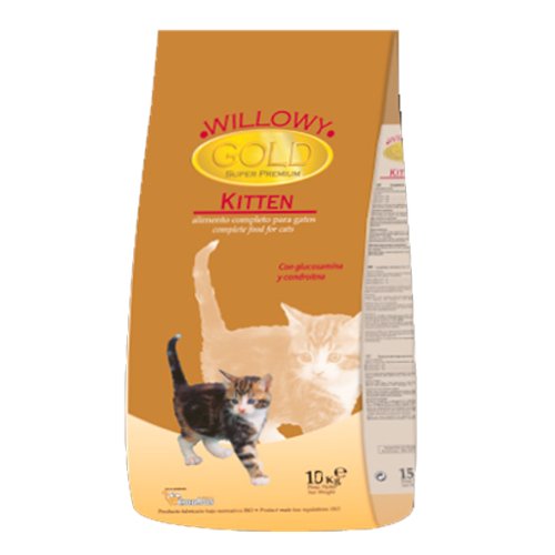 Pilnvertīga sausā barība kaķēniem WILLOWY Gold Kitten. Tas nesatur ģenētiski modificētus sastāvdaļas.